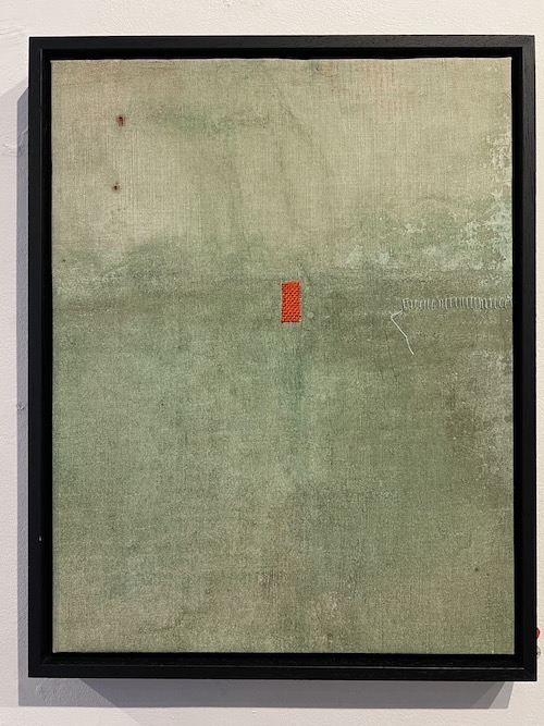 Reclaimed linen with paint handmade from verdigris with darned detail