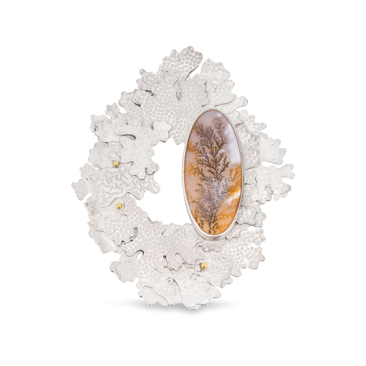 Sterling silver, 18ct gold, dendritic agate, 4.5x6cm