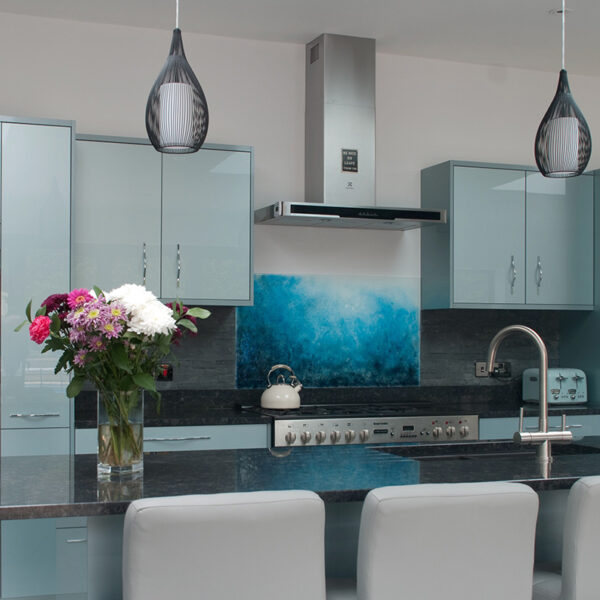 Bullseye Glass bespoke kitchen splashback 200cm x 60cm